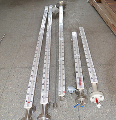 在液位計管體的另一側可按用戶需要加裝電遠傳變送器,將液位高度轉換成標準電流信號輸出,以供液位信號輸出,以供液位信號遠傳至二次儀表進行指示控制與檢測。