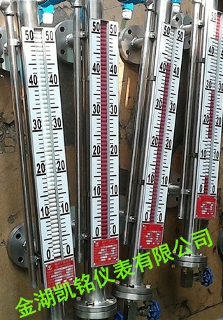 磁翻板液位計是本公司引進、吸收國外同類產品,并加以吸收、消化、提高,按原化學工業部頒布的磁性液位計標準T21584-95研制生產的產品。可用于各種塔、罐槽、球形容器和鍋爐等設備的介質液位檢測。該系列磁性液位計可以做到高密封,防泄漏和適應高壓高溫、腐蝕性條件下的液位測量,具有可靠的安全性,它彌補了玻璃板(管)液位計指示不清晰,易破碎的不足,不受高、低溫度劇變的影響,不需多組液位計的組合。全過程測量無盲區,顯示醒目、讀數直觀,且測量范圍大。特別是現場指示部分,由于不與液體介質直接接觸,所以對高溫、高壓、高粘度、有毒有害、強腐蝕性介質,更顯其優越性。因此,它比傳統的玻璃管,板式液位計具有更高的可靠性、安全性、先進性、實用性。