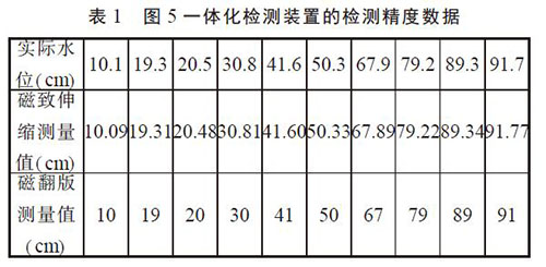 我們把圖5 所示的一體化檢測裝置進行了水位檢測實驗, 其檢測結果與實際水位值見表1。