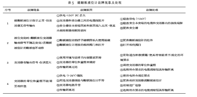 另外,2012年新建20萬t/a合成氨系統2000m³液氨球罐上安裝有一臺LD51纜式導波雷達液位計(位號:LT1201A)和一臺磁翻板液位計,該信號均引入DCS顯示。在開始安裝調試過程中發現雷達液位計與磁翻板液位計顯示不一致,經檢查發現導波雷達液位計取樣管原始高度不正確,經重新調整并對其相關參數進行設定后測量顯示一致。長期穩定運行,給工藝控制提供了準確數據,滿足了工藝要求,有效地保障了設備和人身安全。2014年4月儀表人員抽樣比測記錄數據,見表2所示。