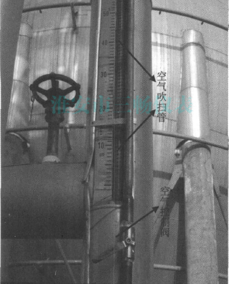 為了保證乙烯球罐安全穩(wěn)定運行,投用初期磁翻板液面計結(jié)冰就很嚴(yán)重,開始以為是由于施工時保冷材料沒有安裝好、保冷材料的厚度不夠等原因造成的,因此對保冷材料全部重新安裝并增加了保冷材料的厚度,但效果不明顯。后又組織崗位操作工對耐酸堿磁翻板液位計上的冰定期進(jìn)行人工清理,由于乙烯球罐容積大(1500m³),液位計長約12米,清理難度非常大,在清除作業(yè)過程中涉及高空等危險作業(yè),增加了員工的工作危險性和勞動強(qiáng)度,而且經(jīng)過人工清理的液位計在運行3~4小時后,又開始掛霜結(jié)冰,運行周期太短。另外每次在清除結(jié)冰的過程中,都會對磁翻板液面計和閥座有所損傷,*終可導(dǎo)致磁翻板液面計損壞報廢。后來又嘗試切斷液面計根部閥切斷,采用自然化冰的方式來清除掛冰,這樣雖然減小了操作工的勞動強(qiáng)度,但這種辦法除冰時間太長,對安全生產(chǎn)不利。為了徹底解決磁翻板掛冰的現(xiàn)象,經(jīng)過反復(fù)論證,技術(shù)人員提出用工廠空氣進(jìn)行吹掃的方案并在其中一具乙烯球罐上進(jìn)行試驗。通過試驗發(fā)現(xiàn)用工廠空氣連續(xù)吹掃掛冰的液位計,基本能夠徹底解決耐酸堿磁翻板液位計掛冰。