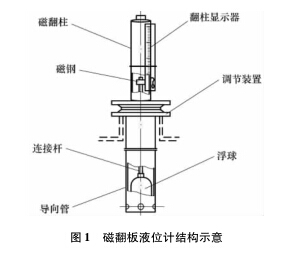 蒸餾水液位計是根據磁性原理、 阿基米德浮力定律等巧妙地結合機械傳動的特性而開發研制的一種專門用于液位測量的裝置。典型的蒸餾水液位計結構如圖 1 所示。