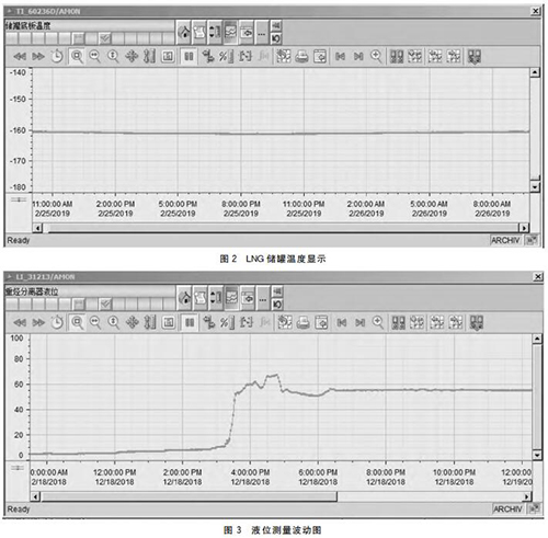 然后利用多孔法蘭(結合LNG項目的實際情況來選擇法蘭的孔數以及尺寸大?。?,將其接到LNG罐頂的溫度變送器接線箱內部,再使用多芯電纜把4~20mA信號發送到控制系統。現場安裝RTD熱電阻建議選用雙支,方便以后檢修更換。圖2為LNG儲罐溫度顯示。