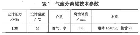 某煉化裝置1臺立式氣液分離罐(規(guī)格DN2400X20,以下簡稱分離罐),技術(shù)參數(shù)見表1。在今年12月運(yùn)行中液位計接管(425x3mm)的外伸部位發(fā)生泄漏,進(jìn)行停工搶修。