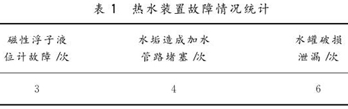 通過多年的使用,總結出熱水裝置在生產使用過程中存在以下問題。