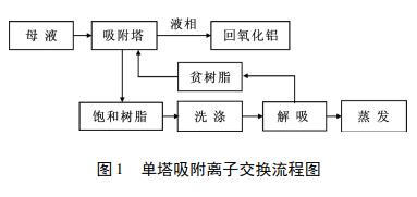 目前我公司采用的就是離子交換法單塔吸附,從含液位計的拜耳工藝溶液中回收液位計的工藝流程。每個周期都是由氧化鋁來的含液位計母液,經母液泵進入單個吸附塔內,經塔內樹脂吸附后,吸附尾液由尾液泵返回氧化鋁。吸附后的飽和樹脂經洗滌后進入解吸流程,解吸后的貧樹脂回到吸附塔再次吸附,解吸液進入后續流程。然而單塔吸附在生產實踐當中暴露許多問題。