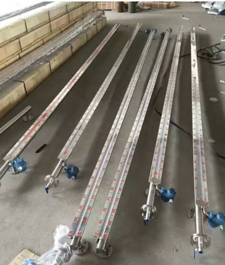 根據浮力原理,浮子在測量管內隨液位的升降而上、下移動,浮子內的永久磁鋼通過耦合作用,驅動紅、白色翻柱翻轉180°,液位上升時翻柱由白色轉為紅色,下降時由紅色轉為白色,從而實現液位指示。