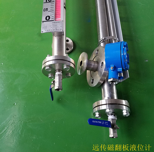 在管體的另一側可按用戶需要加裝電遠傳變送器,將液位高度轉換成標準電流信號輸出,以供液位信號輸出,以供液位信號遠傳至二次儀表進行指示控制與檢測。